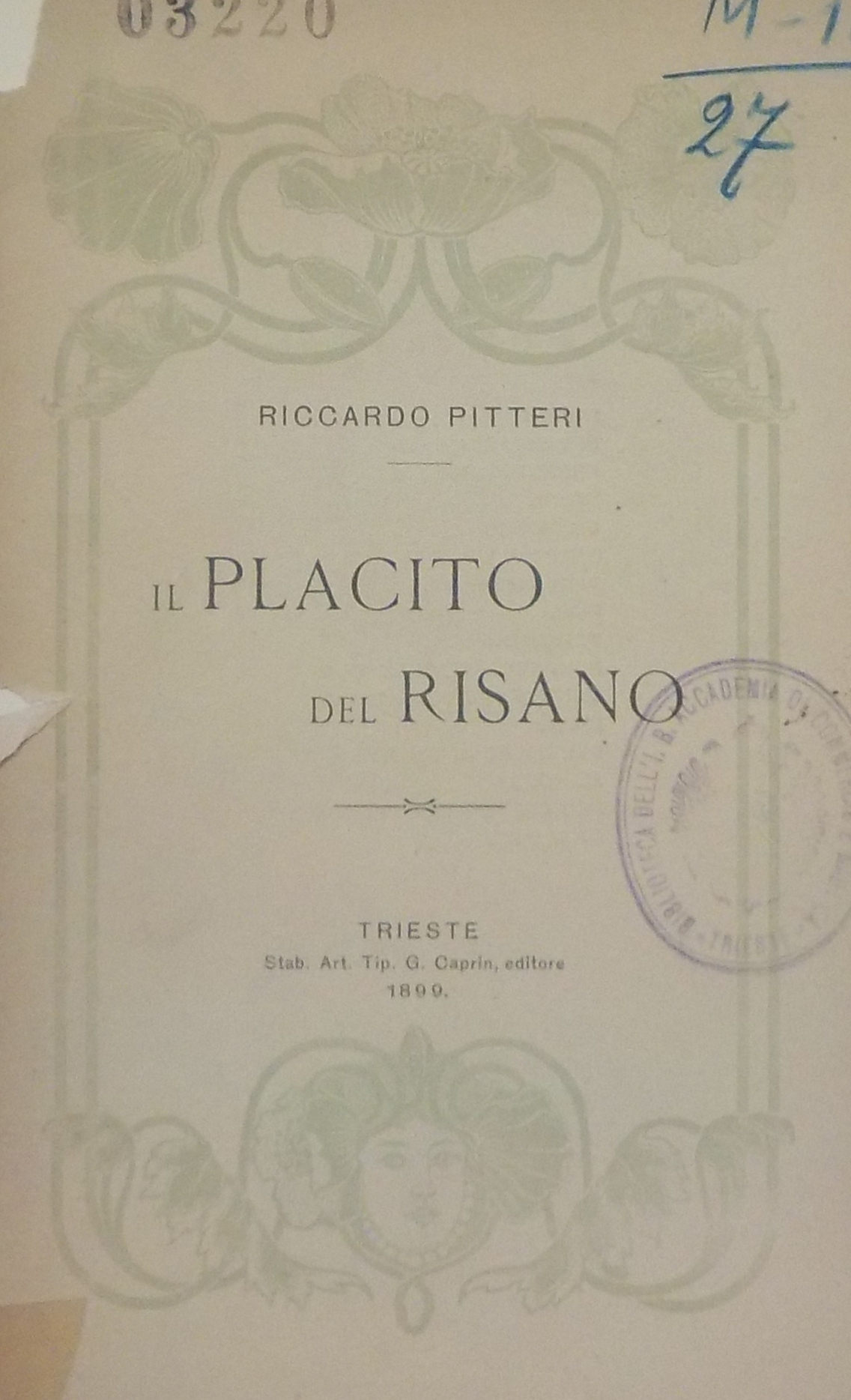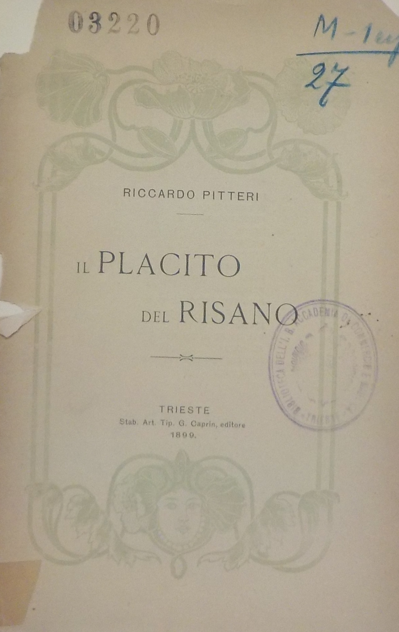 Il *placito del Risano / Riccardo Pitteri. - Trieste : Stabilimento artistico tipografico. G. Caprin Edit., 1899. - 38 p. ; 20 cm. ((Poemetto. - L. 1.20.