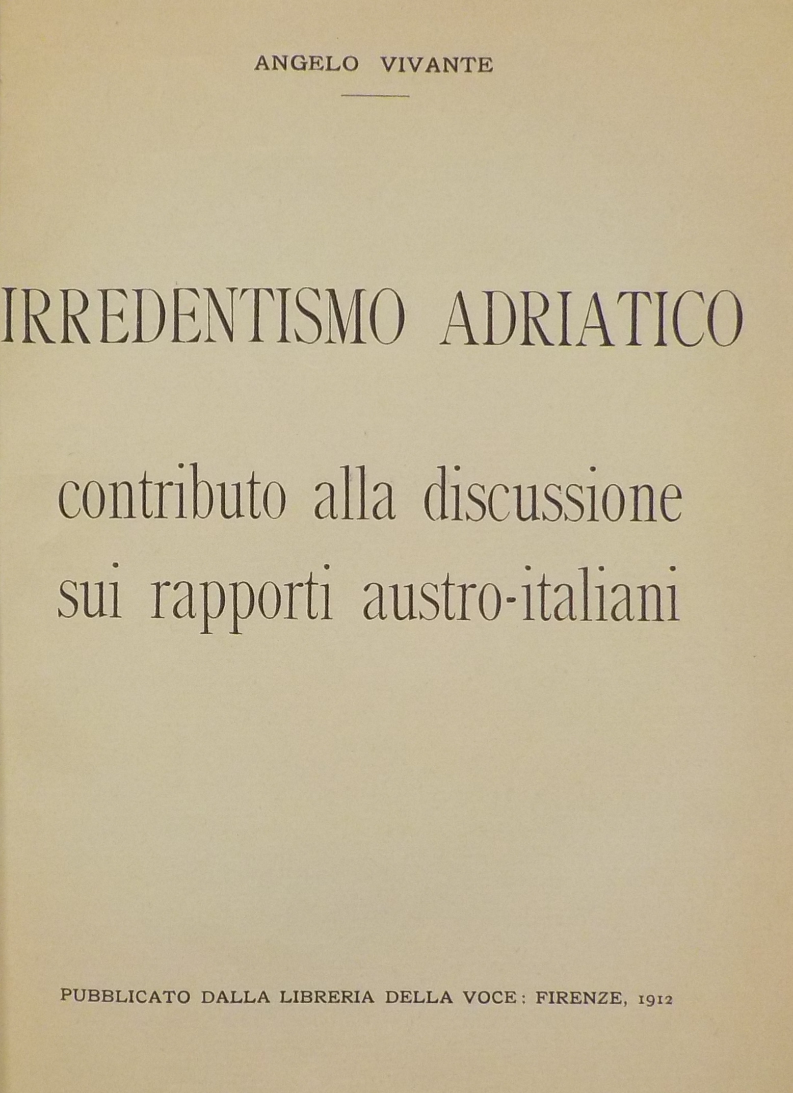 *Irredentismo adriatico / Angelo Vivante. - Firenze : Parenti, stampa 1954. - XXIV, 261 p. ; 23 cm.